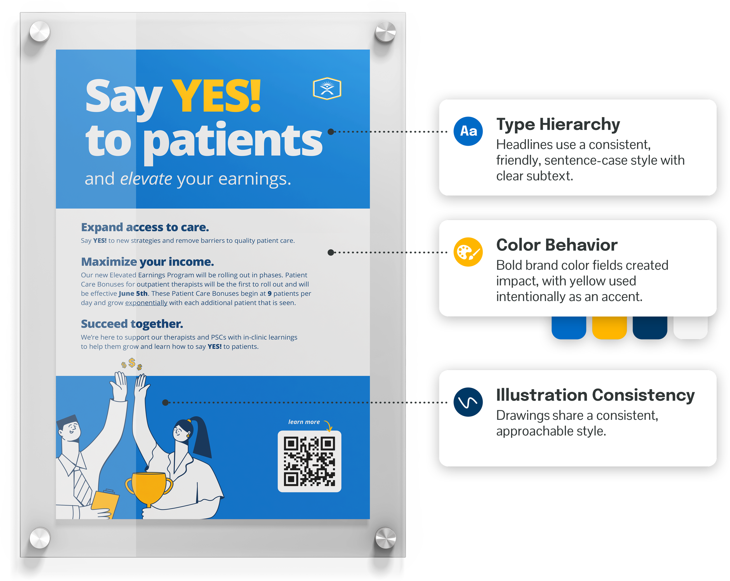 The “Say Yes” patient care philosophy needed to be communicated clearly and consistently across internal touchpoints to support understanding, adoption, and alignment - without fragmenting the message or diluting its intent.