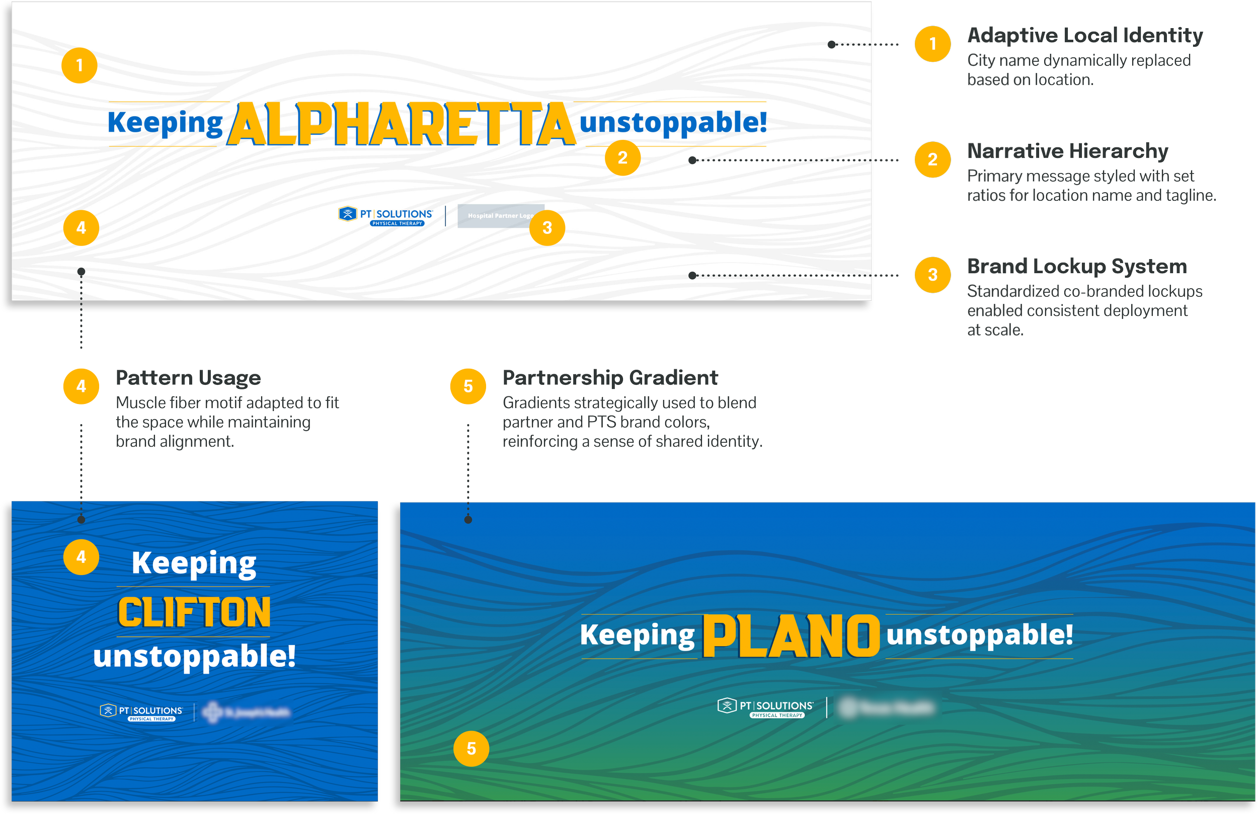 PT Solutions needed a way to unify hundreds of clinics under a single brand promise while still feeling locally relevant, human, and emotionally resonant for the communities they serve.
