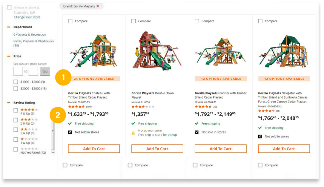 2. Price ranges communicate customization at a glance.