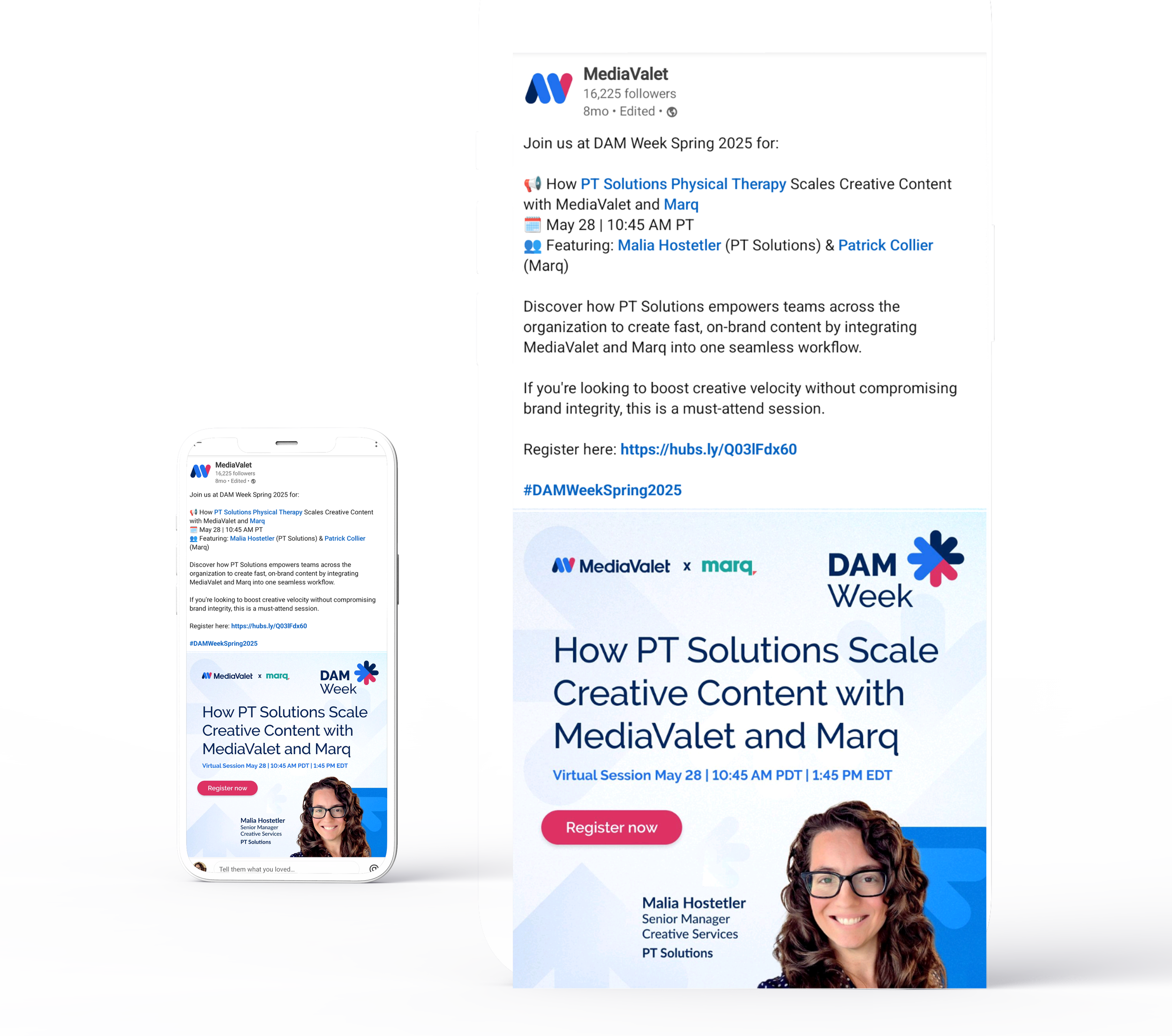 I introduced Marq as a templating platform and designed a system of controlled flexibility - locking brand-critical elements while allowing teams to customize approved content areas.