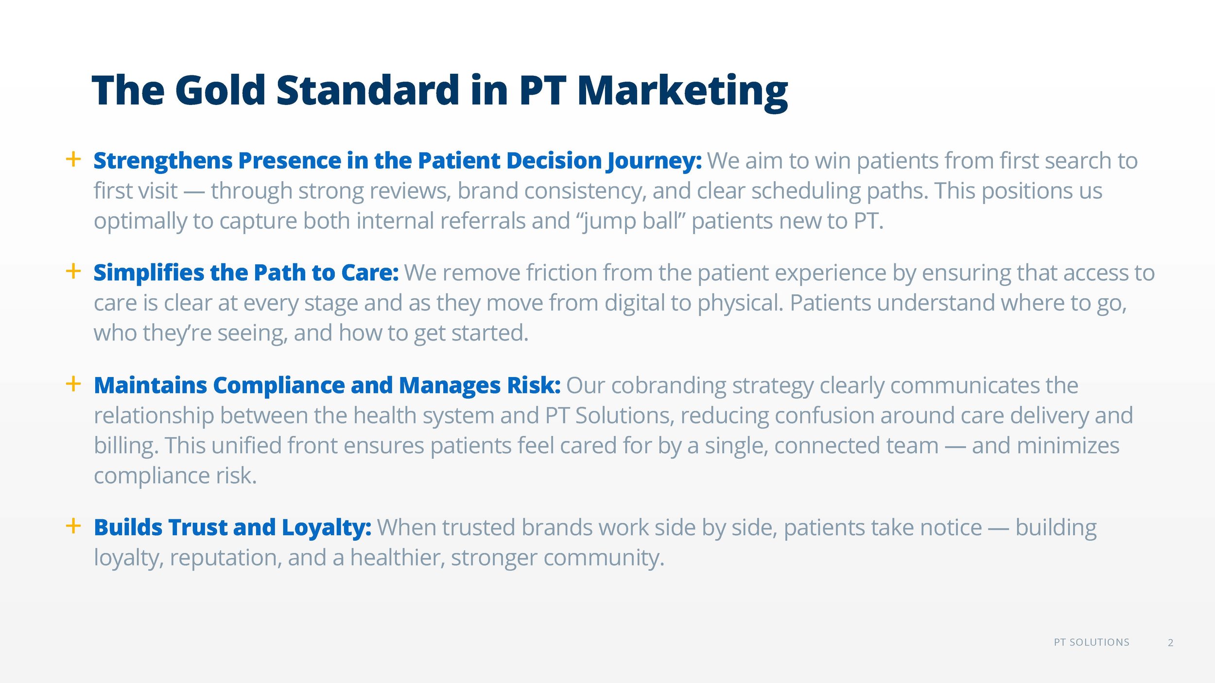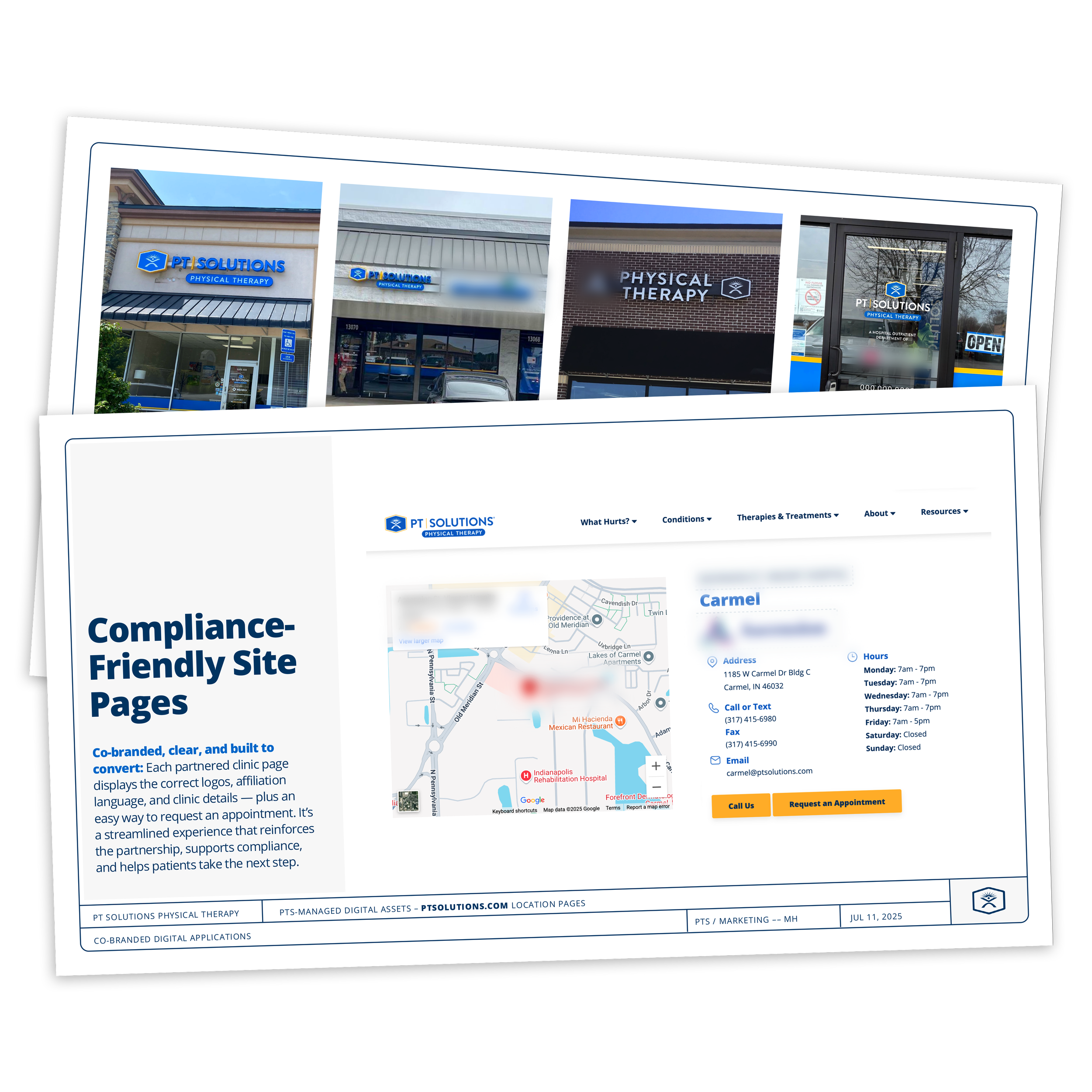 As PT Solutions rapidly expanded hospital partnerships, inconsistent cobranding created real risk - diluting the brand, confusing patients, and slowing approvals across teams. While strategic guidance existed, it lived in fragments and lacked a clear structure partners could easily understand or apply.