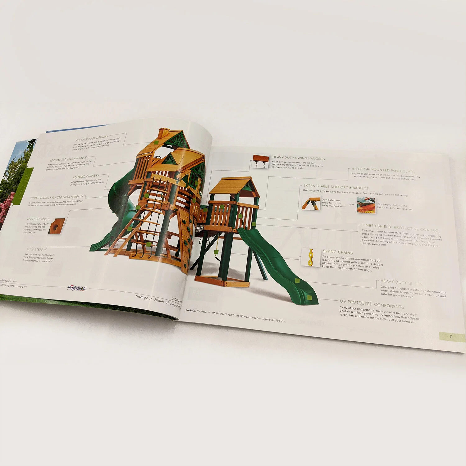 For the last 7+ years I’ve been in charge of designing and coordinating the production of a 100+-page annual catalog for PlayNation and Gorilla Playsets. Below are a sampling of inside pages throughout the years.